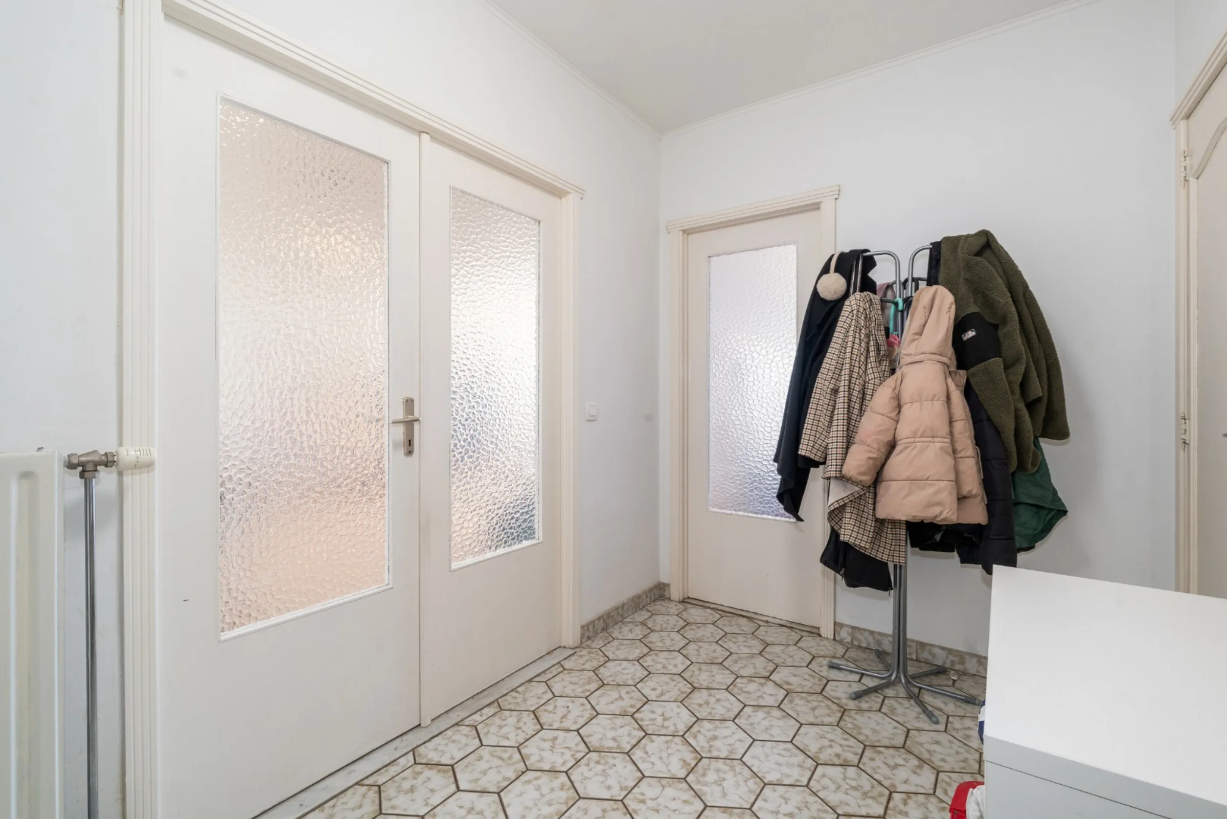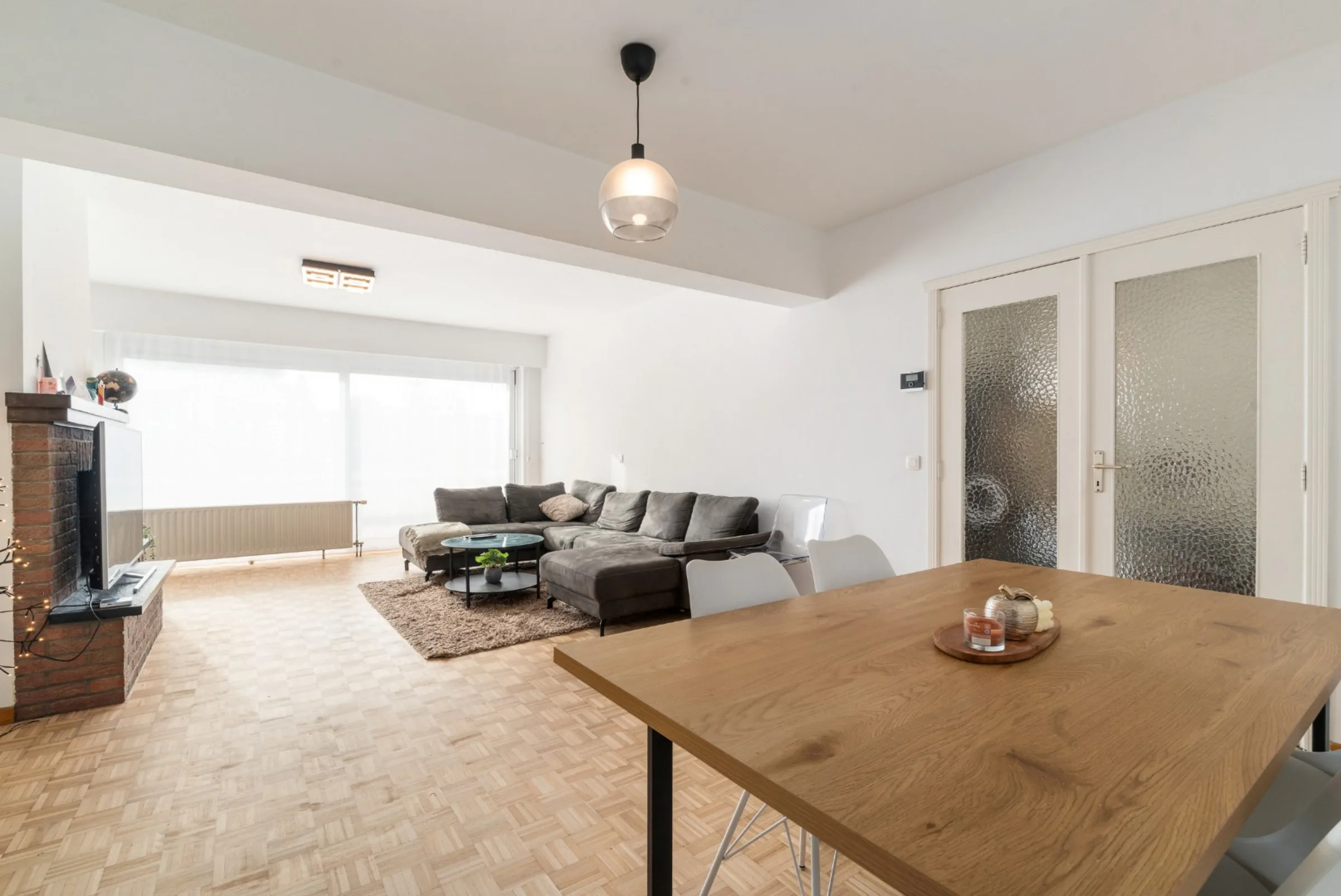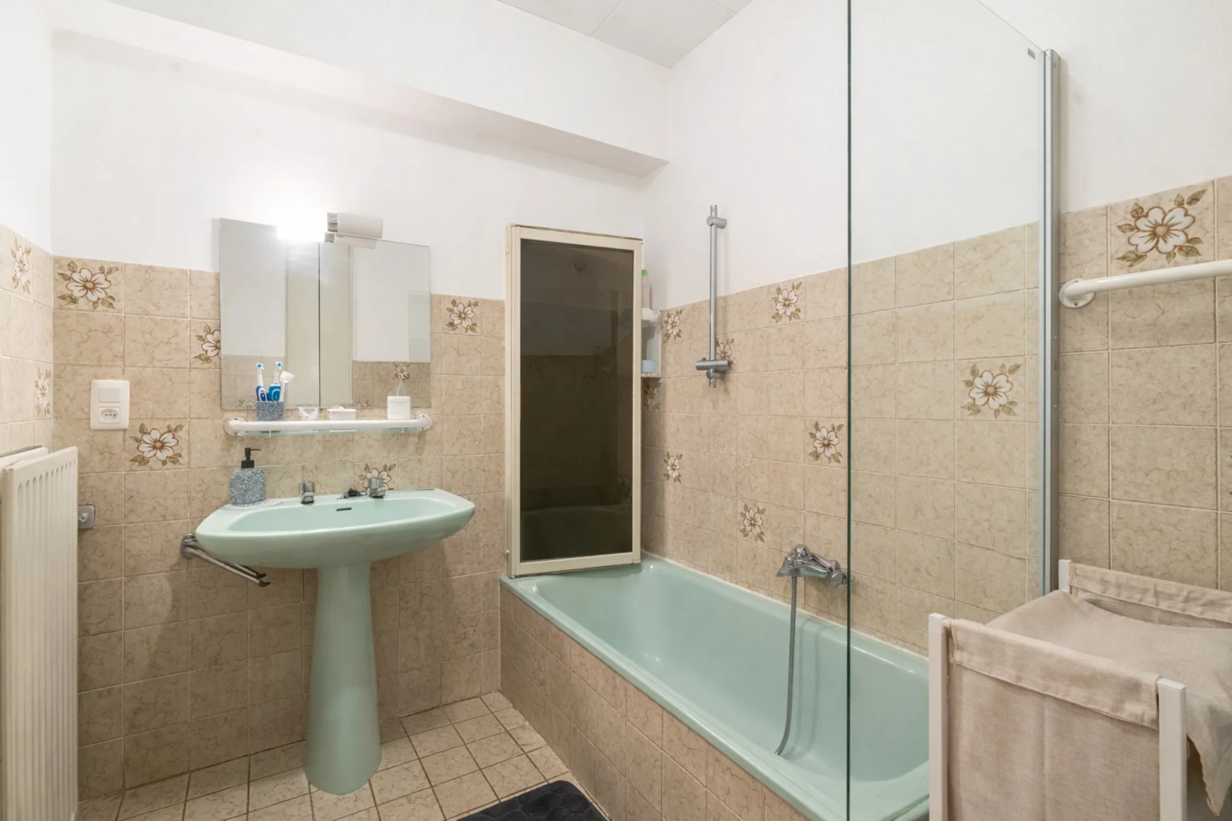 Het appartement werd enkele jaren geleden grondig opgefrist en wordt vandaag bewoond door een correcte huurder die het pand met zorg behandelt. De royale ruimtes en overvloedige lichtinval zorgen voor een aangename woonbeleving. Via de inkomhal met gastentoilet en vestiaire kom je in de leefruimte met massieve parketvloer, waar plaats is voor een grote zithoek en eettafel. De afzonderlijke keuken is praktisch ingericht en biedt alle nodige comfort.